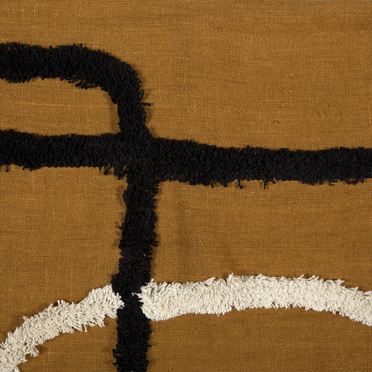 Funda Cojín Lino Bordado Tikri Caramel 55x110 cm