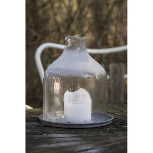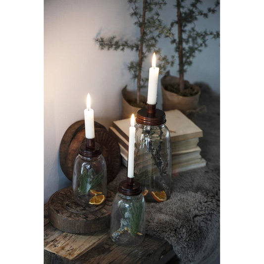 Portavela de Vidrio Alto Tapa Metálica Oxido