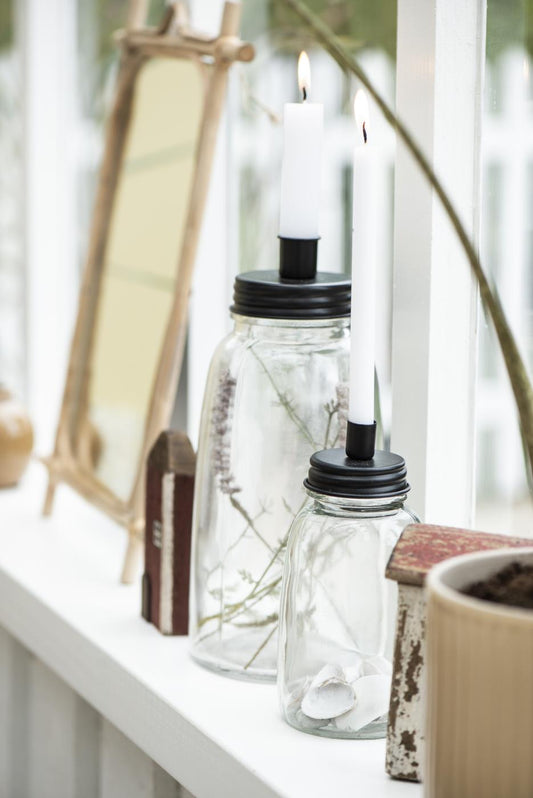 Portavela de Vidrio Alto Tapa Metálica Negra
