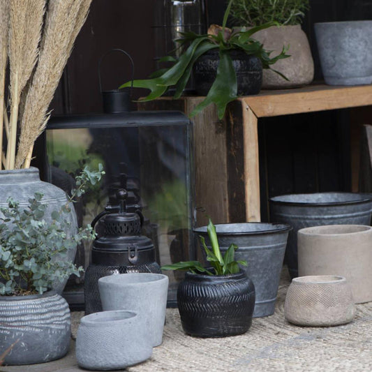 Pot de Cemento Cleopatra Charbon H: 25 cm Ø: 27 cm