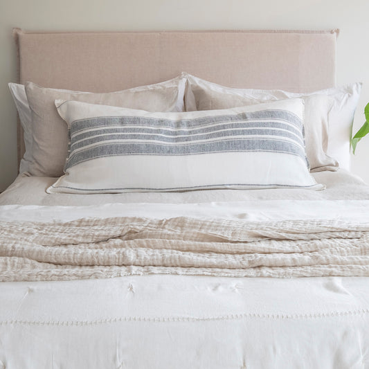 Nuestro cojín de 55x110 cm es ideal para darle un toque final a tu cama ya que cubrirá el espacio entre las almohadas haciendo que se vea bien armada. Un clásico de La Blanquería disponible en lino y terciopelo de algodón.