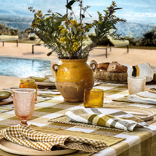 Viste tu mesa con nuestra amplia variedad de individuales 100% lino, lino engomado y de algodón. Un estilo único, relajado y a la vez elegante, con colores primaverales y neutros, lisos, a rayas y estampados.