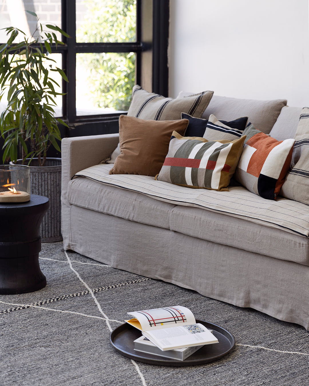 Funda Cojín Niza Natural/Negro 65x65 cm