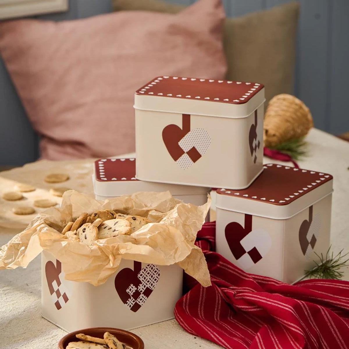 Contenedor metálico versátil diseñado para mantener tus galletas frescas y protegidas, o para organizar objetos pequeños con estilo. Ideal para el hogar, la cocina o como solución de almacenamiento decorativa.