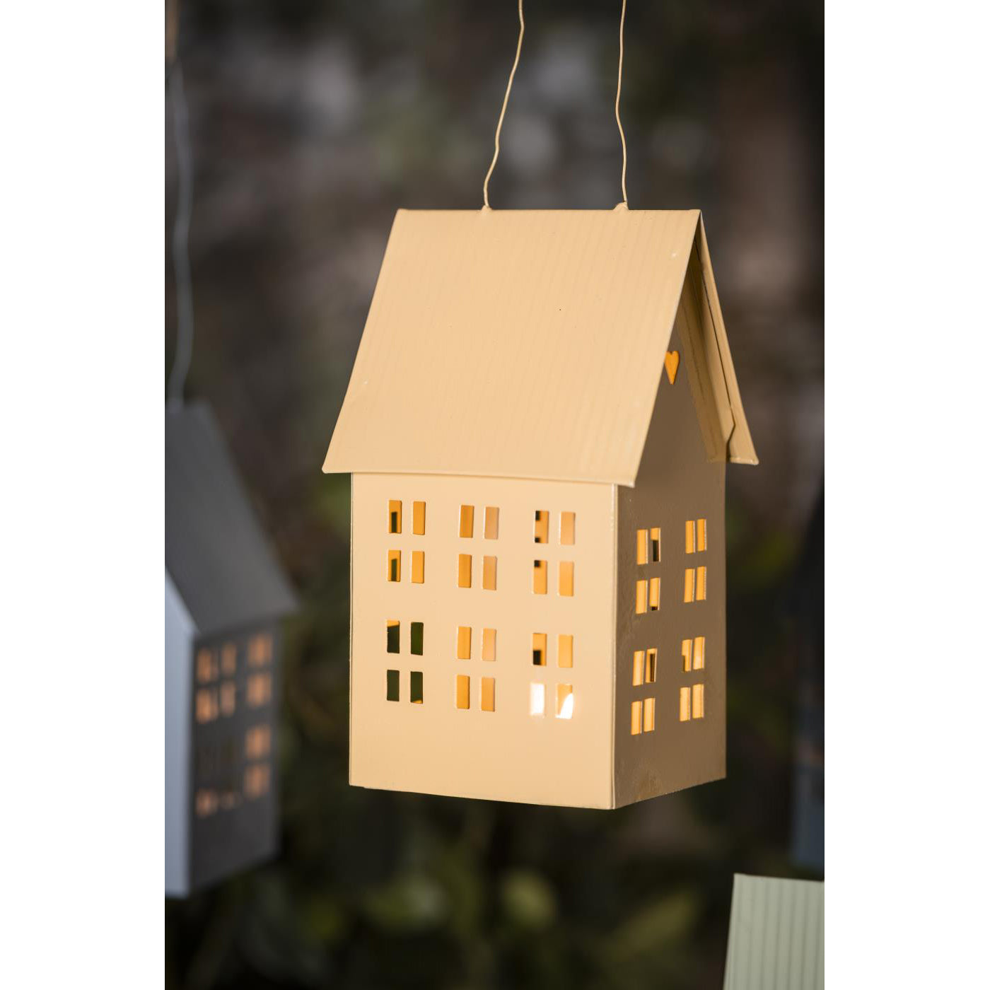 Encantador portavela en forma de casa. Fabricado en metal robusto, se presenta como una fusión armoniosa de funcionalidad y diseño. Las diferentes opciones de color te permiten expresar tu estilo personal. Puedes colgar los portavelas y crear un ambiente aireado y animado, perfecto para los cálidos días de verano.