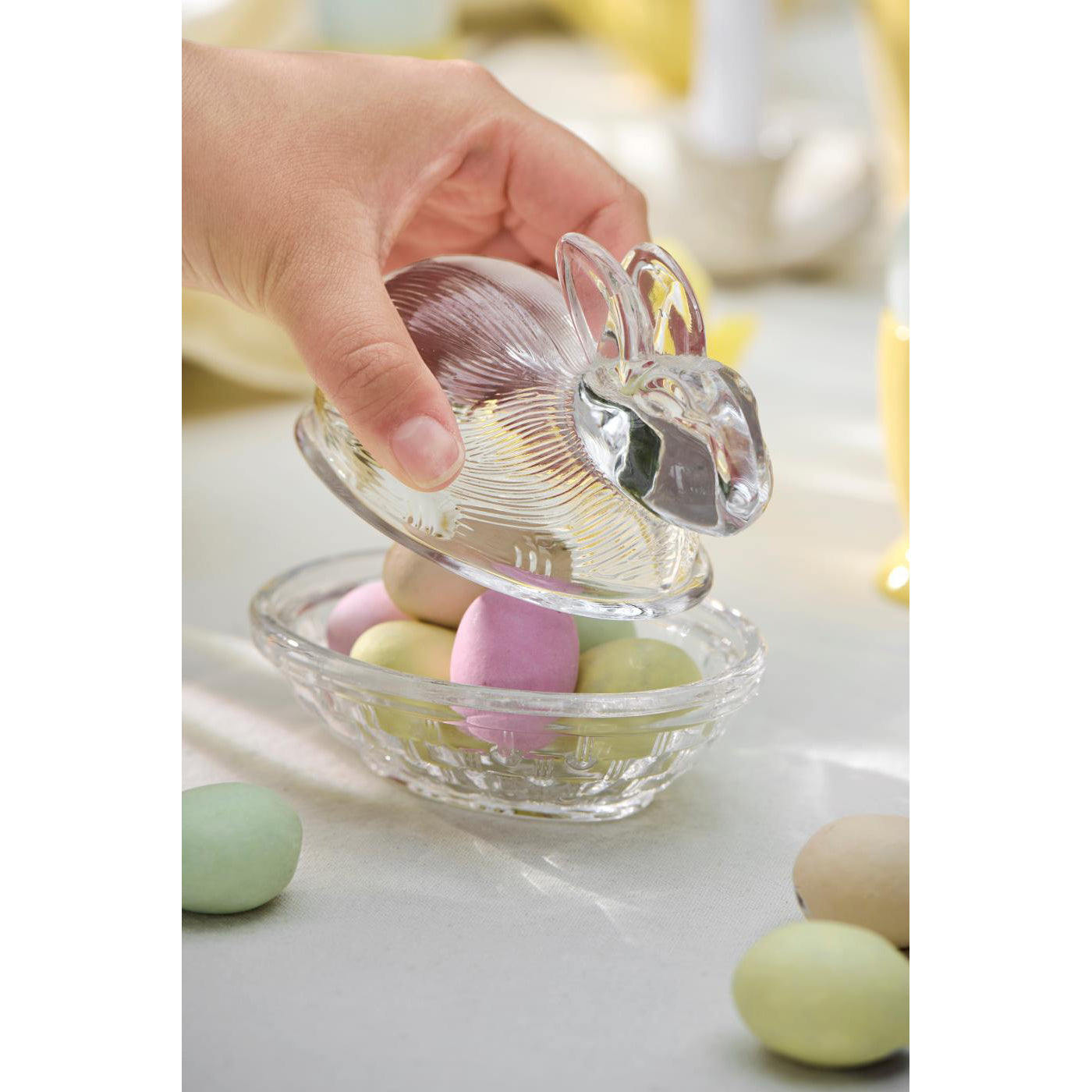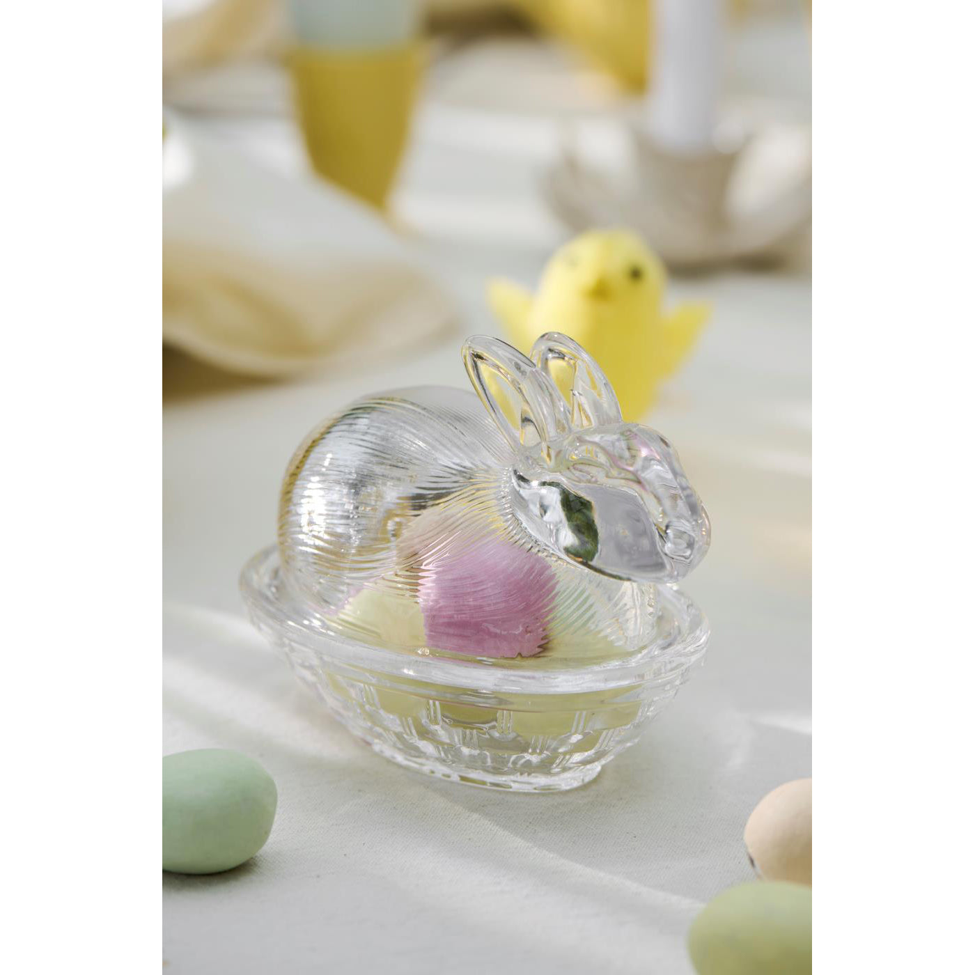 Encantador conejo de vidrio de dos piezas, ideal para guardar o rellenar con pequeñas sorpresas esta pascua o durante el año.