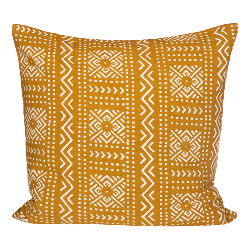 Funda cojin 60x60cm 100% algodón diseño Mud, variedad Honey. Cara frontal estampada y reverso liso color Honey. Cierre metálico del mismo color.