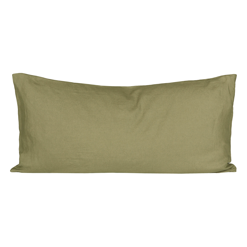 Funda de cojín confeccionada en 100% lino belga, de grandes dimensiones, ideal para usar como pieza central en camas desde 2 plazas hacia arriba, aportando presencia y elegancia.