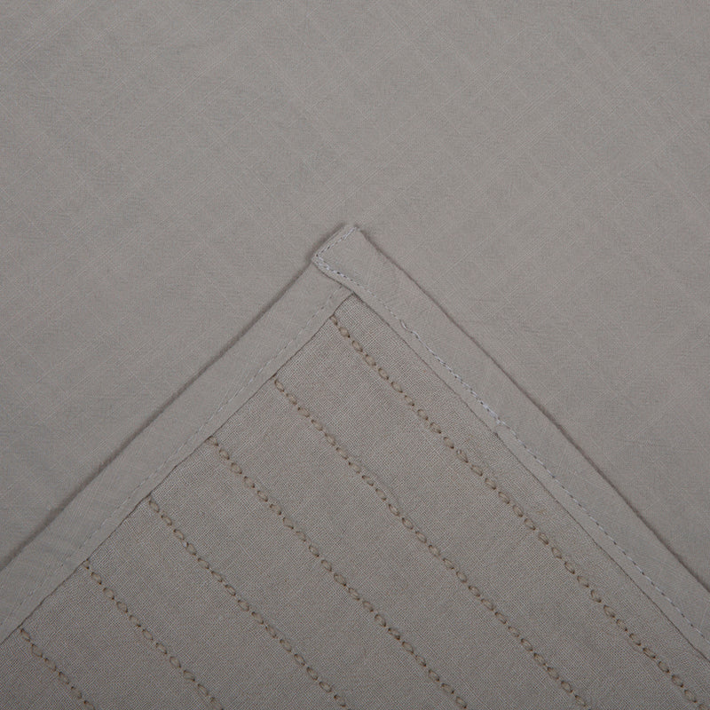 Úsalo junto a un plumón en los meses más fríos para obtener un abrigo suave y envolvente, o como cubrecama liviano durante el verano, ideal para noches frescas. Su diseño funcional incorpora una cara superior confeccionada en napa acolchada, que aporta una capa térmica ligera y confortable. La mezcla de lino y algodón en esta superficie garantiza una textura agradable al tacto y una excelente transpirabilidad, mientras que la cara inferior, elaborada en 100% algodón, asegura un descanso placentero, fresco y libre de irritaciones.