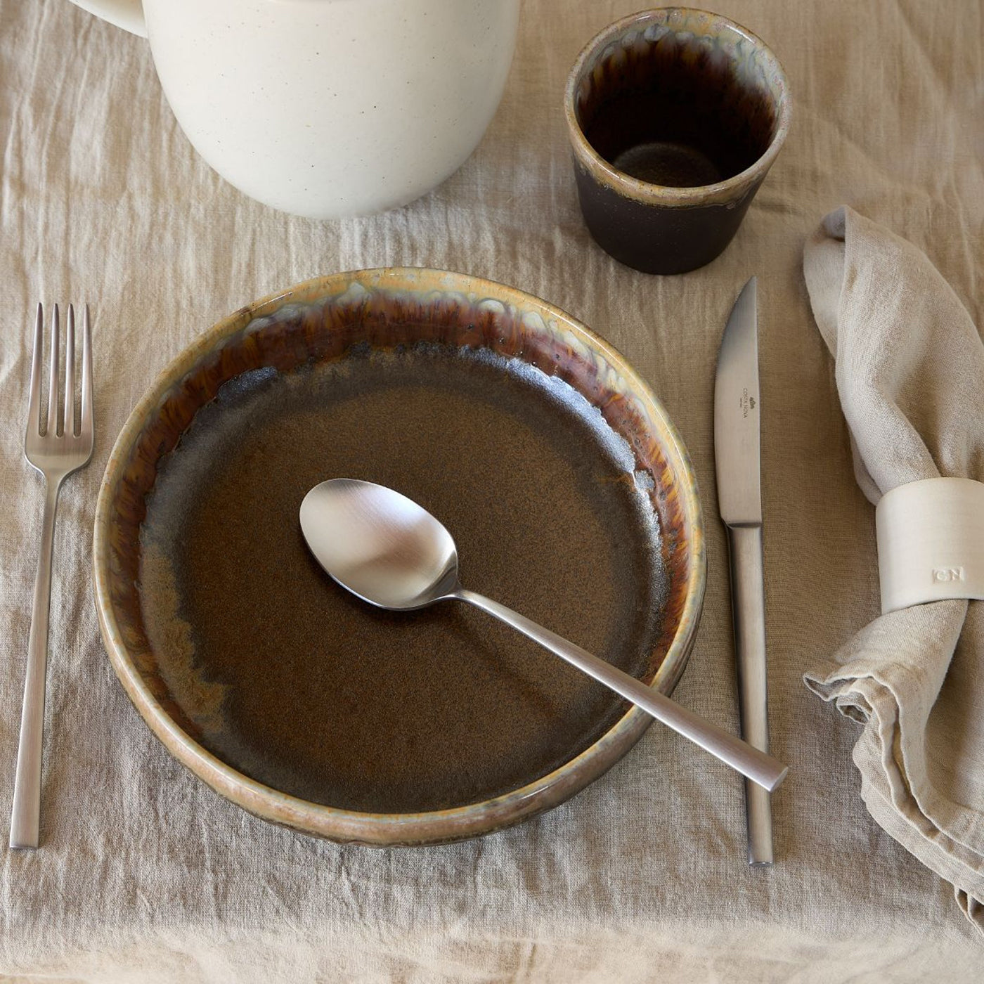 Este set para 6 personas consta de un cuchillo con mango solido, tenedor , cuchara, tenedor de postre y cuchara de postre por persona. Con un diseño contemporáneo y un acabado cepillado que resalta su estilo audaz. Fabricada en Portugal, por la marca Costa Nova, combina calidad y modernidad en cada detalle.