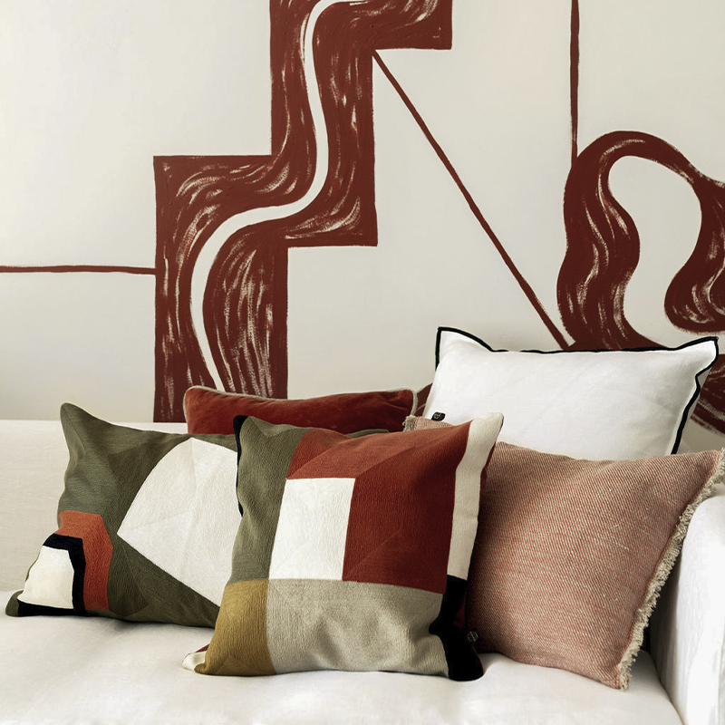 La funda de cojín Tamba con su juego de contrastes crea un equilibrio visual cautivador, donde cada tono aporta profundidad y presencia.