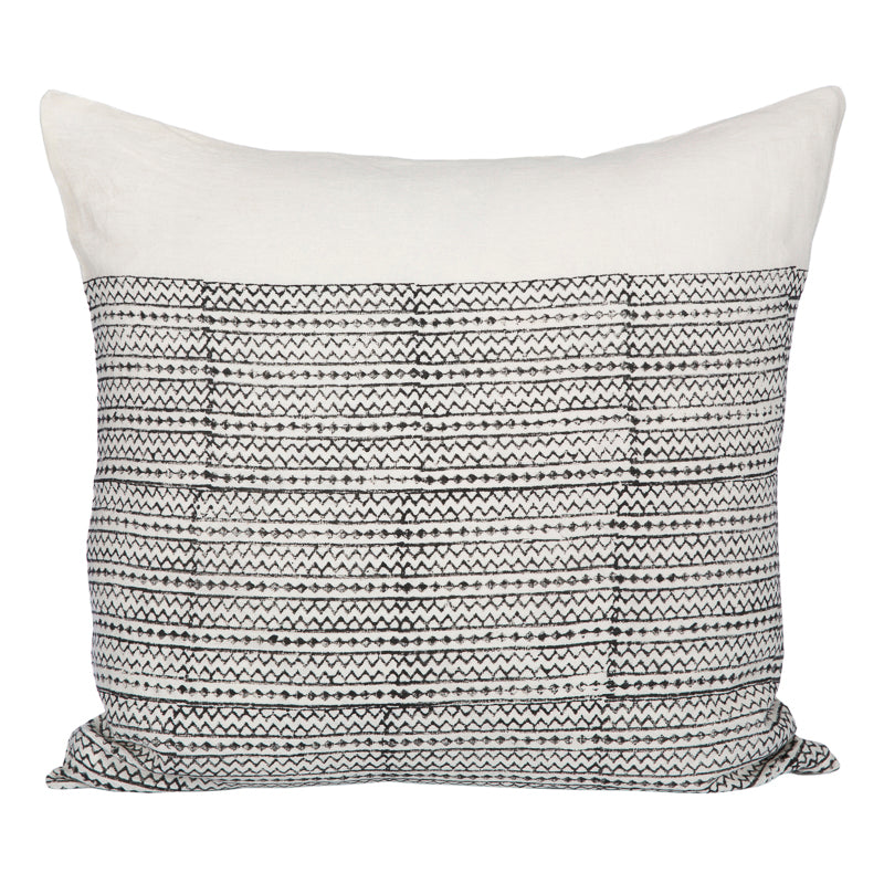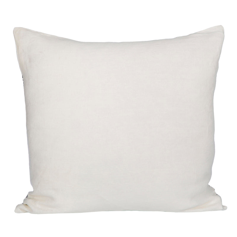 La funda es 100% lino estampado en el frente, tela lisa a tono en el reverso y cierre metálico invisible en uno de sus lados.