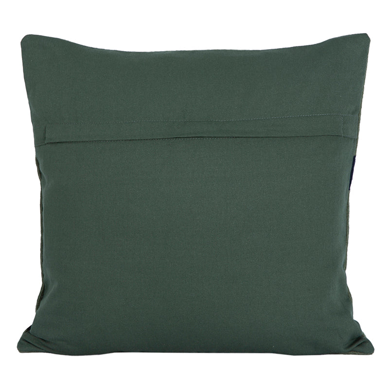La funda es de algodón bordado en su cara frontal, y algodón liso en la trasera. Cierre metálico invisible a tono en traslape en la zona posterior de la funda.