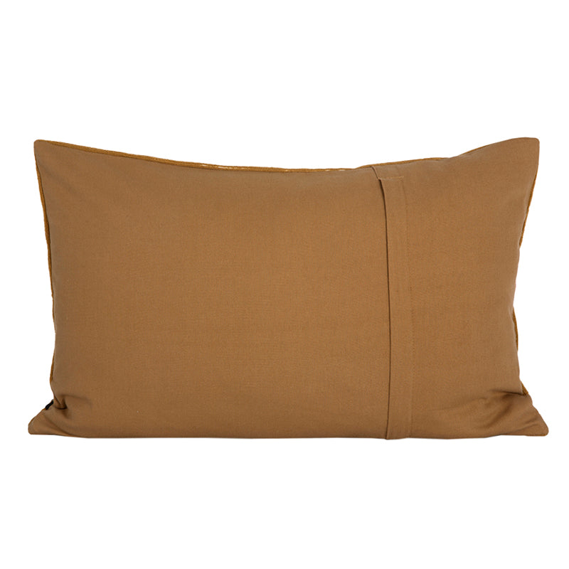 La funda es de algodón bordado en su cara frontal, y algodón liso en la trasera. Cierre metálico invisible a tono en traslape en la zona posterior de la funda.