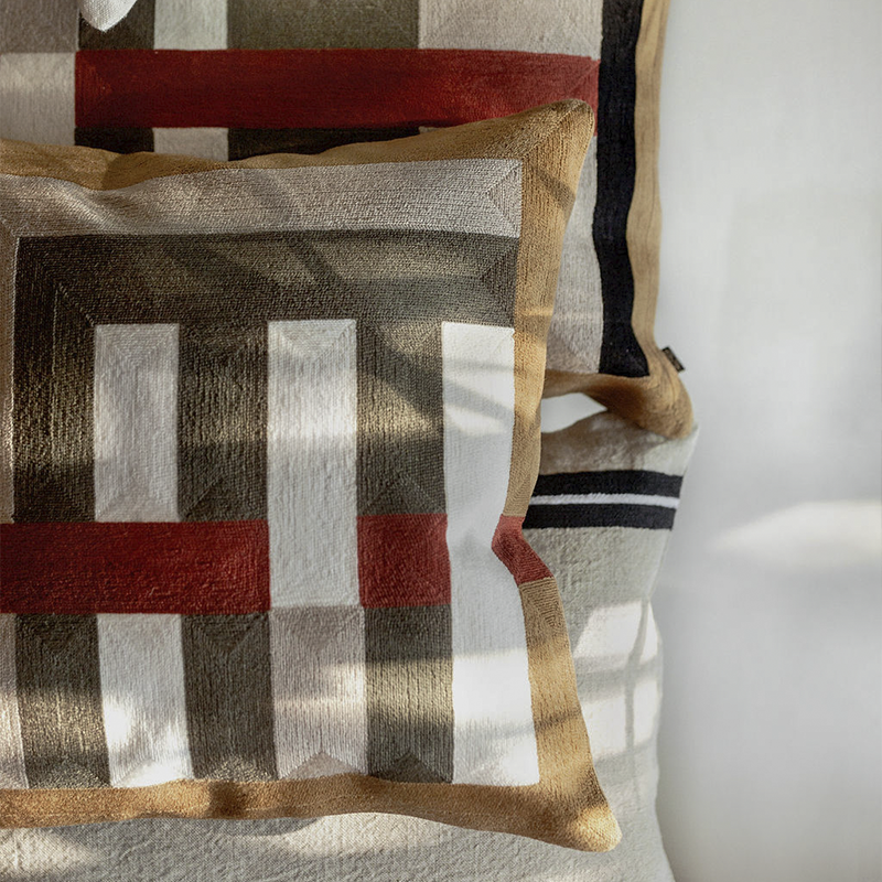 Las líneas rectas y el juego de contrastes convertirán tu cama o sofá en un escenario de modernidad y dinamismo.