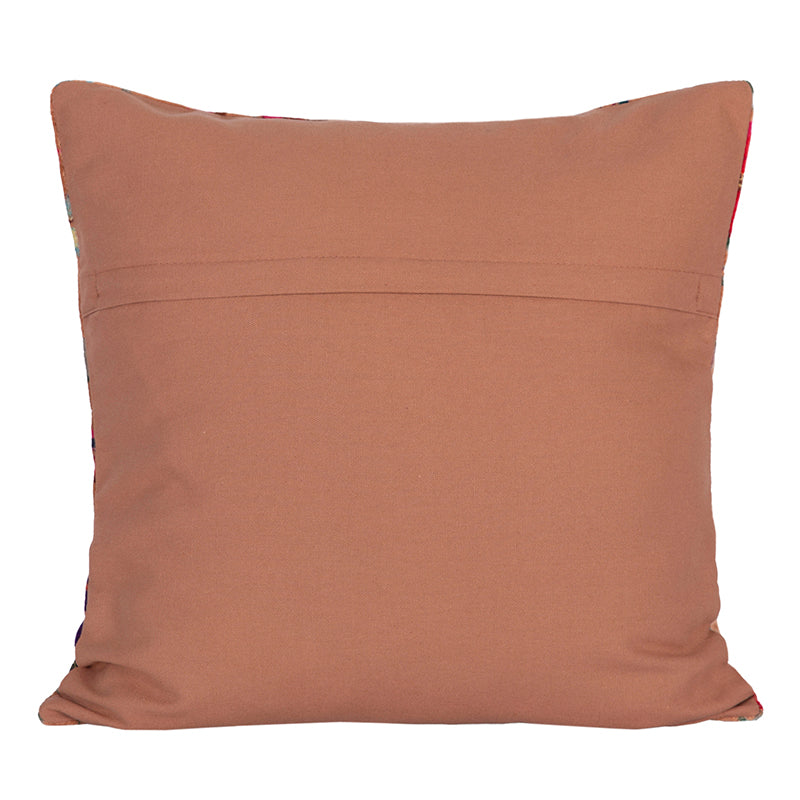 La funda es de terciopelo de algodón estampado en su cara frontal, y algodón color a tono en su parte posterior. Cierre metálico invisible a tono en traslape en la zona posterior de la funda.