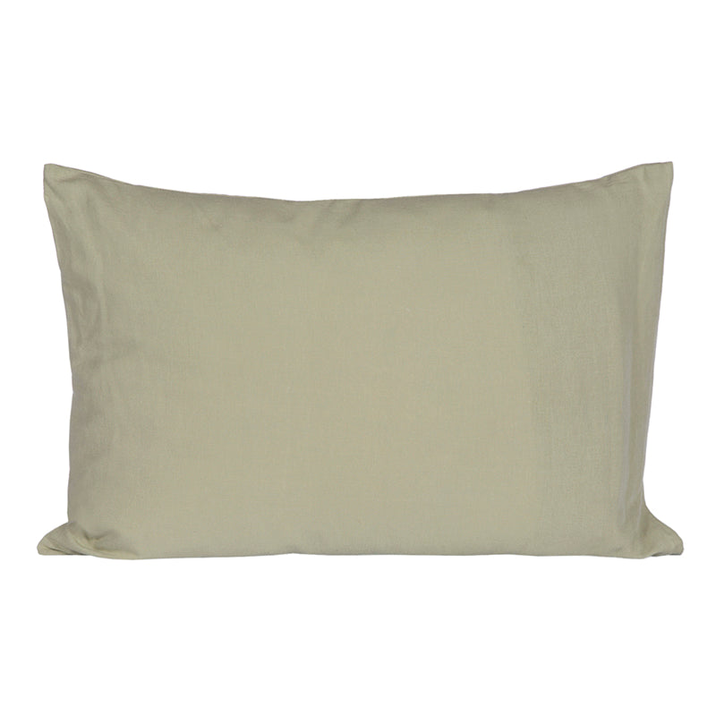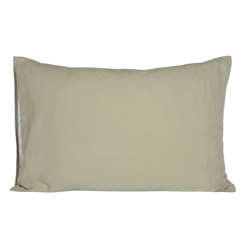 La funda está confeccionada con una mezcla de 58% lino y 42% algodón. Terminación con costura simple, cuenta con un traslape en la parte trasera.
