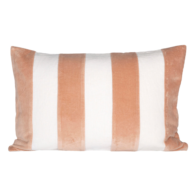 La funda es de lino y terciopelo en el frente, y lino a tono en el reverso. Cierre metálico invisible en el lateral de la funda.