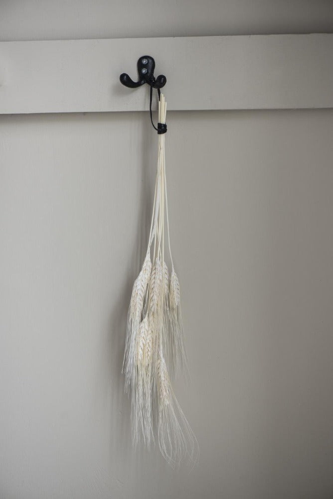 Gancho doble de metal color negro. Viene con dos orificios, lo cual permite una fijación más firme al muro. Permite colgar chaquetas o cualquier prenda de vestir.