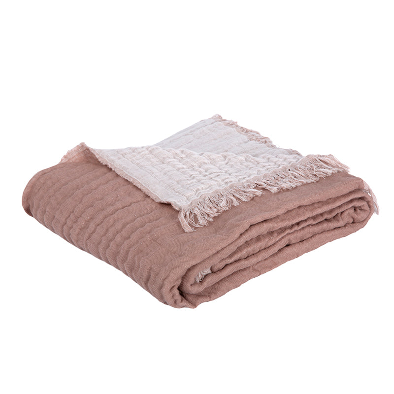 Esta nueva edición de nuestra icónica manta Baya presenta una mezcla de 55% lino y 45% algodón. Creada en Francia, esta manta reversible ofrece la frescura natural del lino junto con un diseño adaptable a cualquier ambiente. Cada lado exhibe un color distinto, brindando gran versatilidad. Ideal para todo el año, proporciona una sensación de confort y elegancia en cada uso.