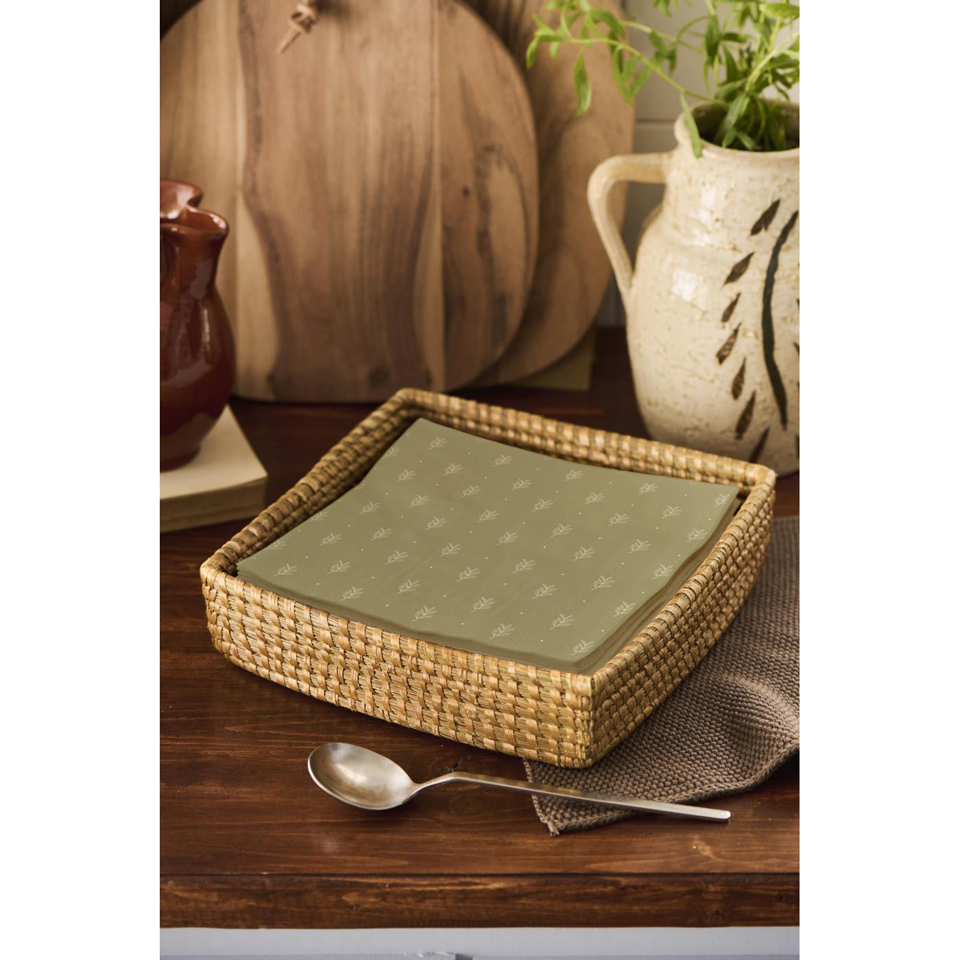 Servilletero cuadrado fabricado con hierbas de pastizal, un material natural y resistente que aporta a cualquier mesa un encanto rústico y calido. Combina perfectamente con servilletas cuadradas u otros accesorios de mesa.