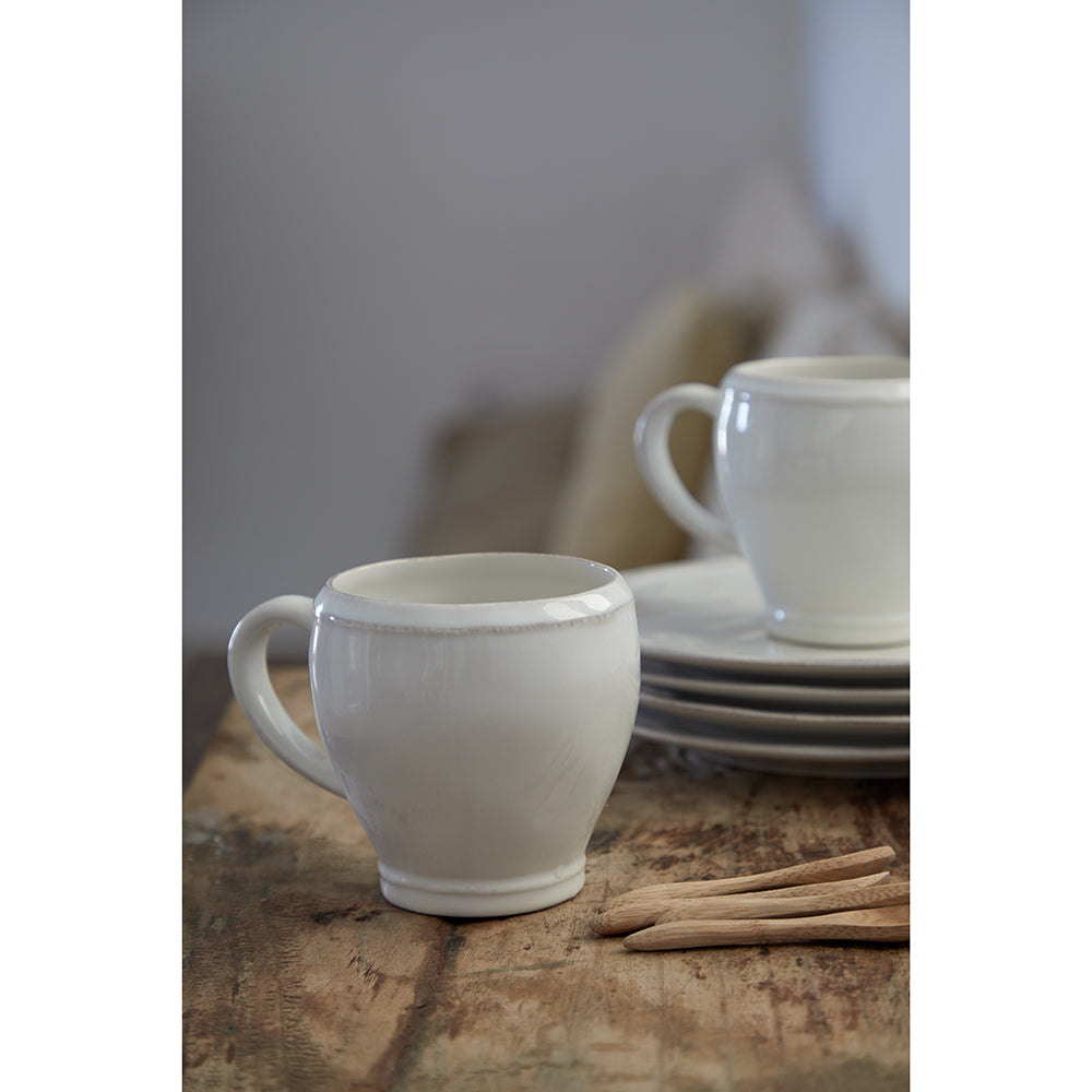 Con formas orgánicas y una paleta blanca limpia, la colección Fontana se inspiró en las reuniones italianas en la mesa. El hermoso borde hecho a mano y el esmalte blanco de alta resistencia de Fontana brilla bajo el sol.