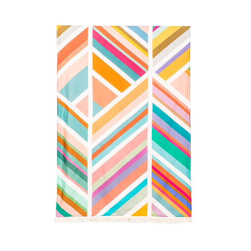 Esta toalla no solo destaca por su patrón geométrico cautivador, sino también por su combinación de colores cuidadosamente elegidos, que logran un equilibrio perfecto entre lo vibrante y lo refinado.